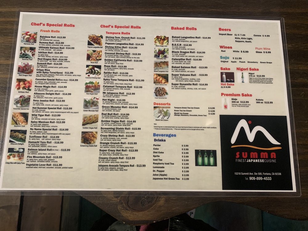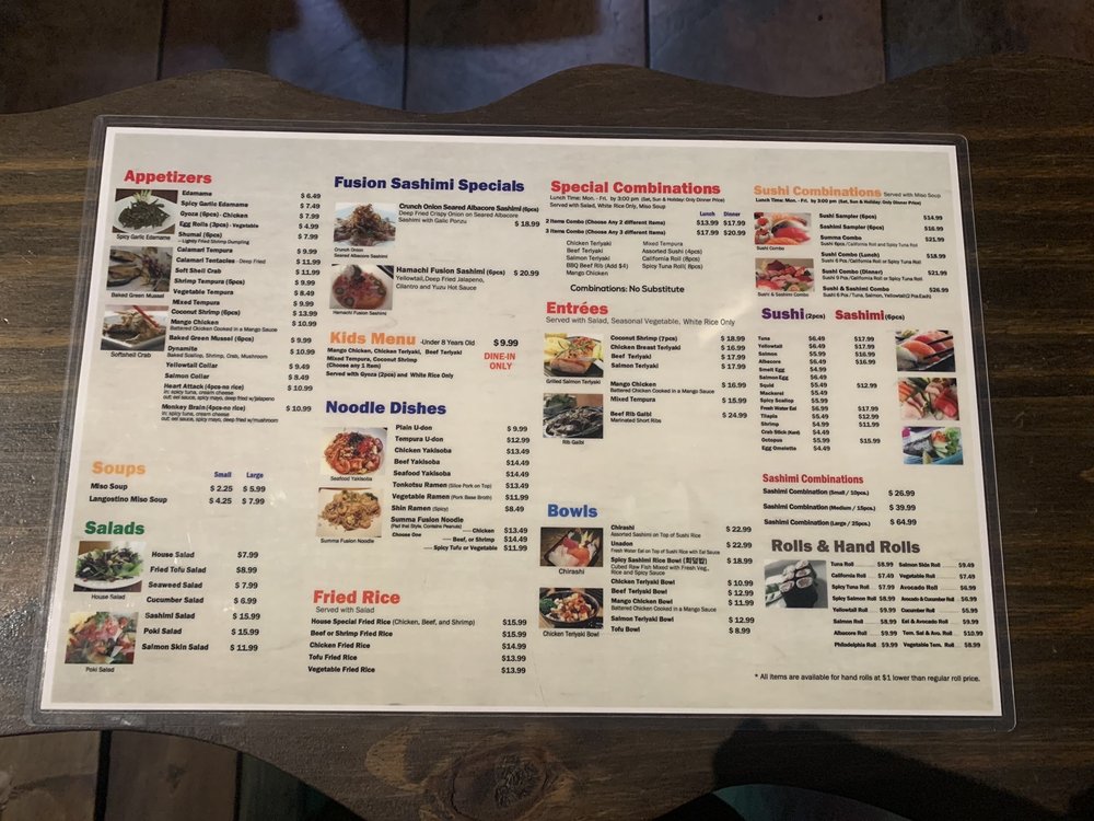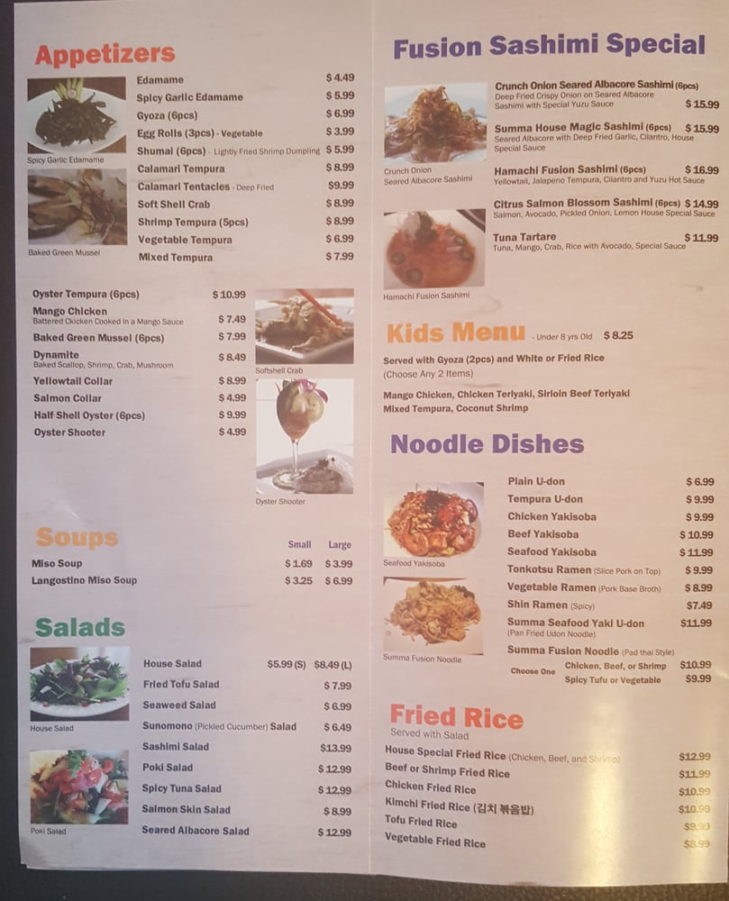 Summa Sushi Menu (Update 2025)